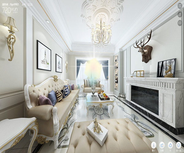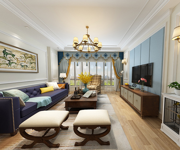 吉安云岭新城装修_125平米装修效果图_美式轻奢风格
